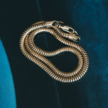 Slinky vintage snake link bracelet crafted in rich 18 carat yellow gold. It's Italian and dates from the 1960s, 7.5 inches in length and fastens with a lobster clasp. A wonderfully tactile, timeless piece, what's not to love?