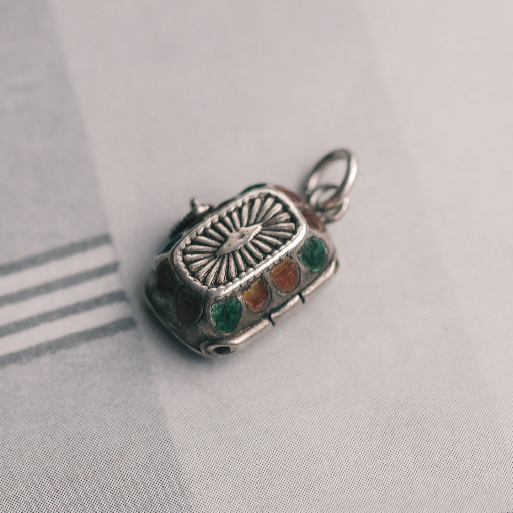 An interesting Egyptian Revival style charm of a tiny (like, absurdly tiny) baby Moses tucked inside an enamelled basket. This particular piece represents a story, you probably already know, of a baby, born in Egypt to an enslaved mother, at a time when the Pharaoh was worried about an uprising. As a result, he ordered all baby boys born to the enslaved Israelite people to be drowned at birth. Moses' mother managed to hide him for a few weeks and then, when he became too big, placed him in a basket among the reeds on the bank of the River Nile. Moses was then found by the daughter of the Pharaoh who adopted him and brought him up in the Egyptian Royal household.