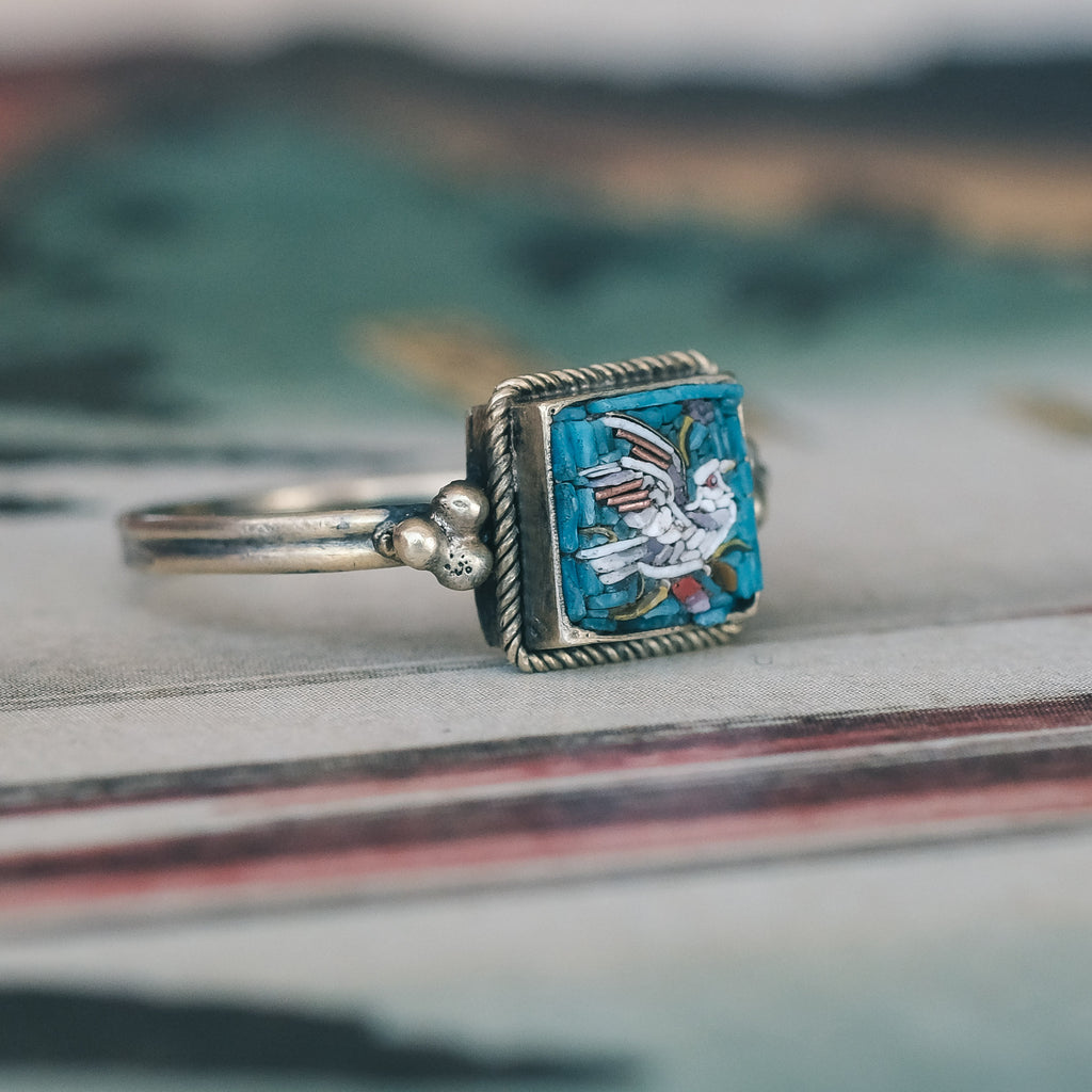 Etruscan Revival Micromosaic Bird Ring