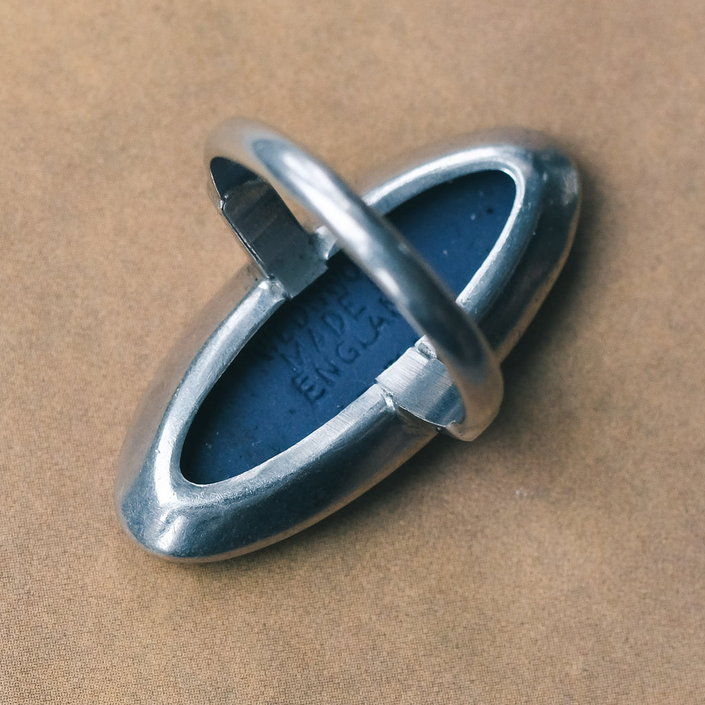 The ring is crafted in sterling silver with English hallmarks dating it to the year 1975 as well as the JW maker's mark for Josiah Wedgwood & Sons Ltd.