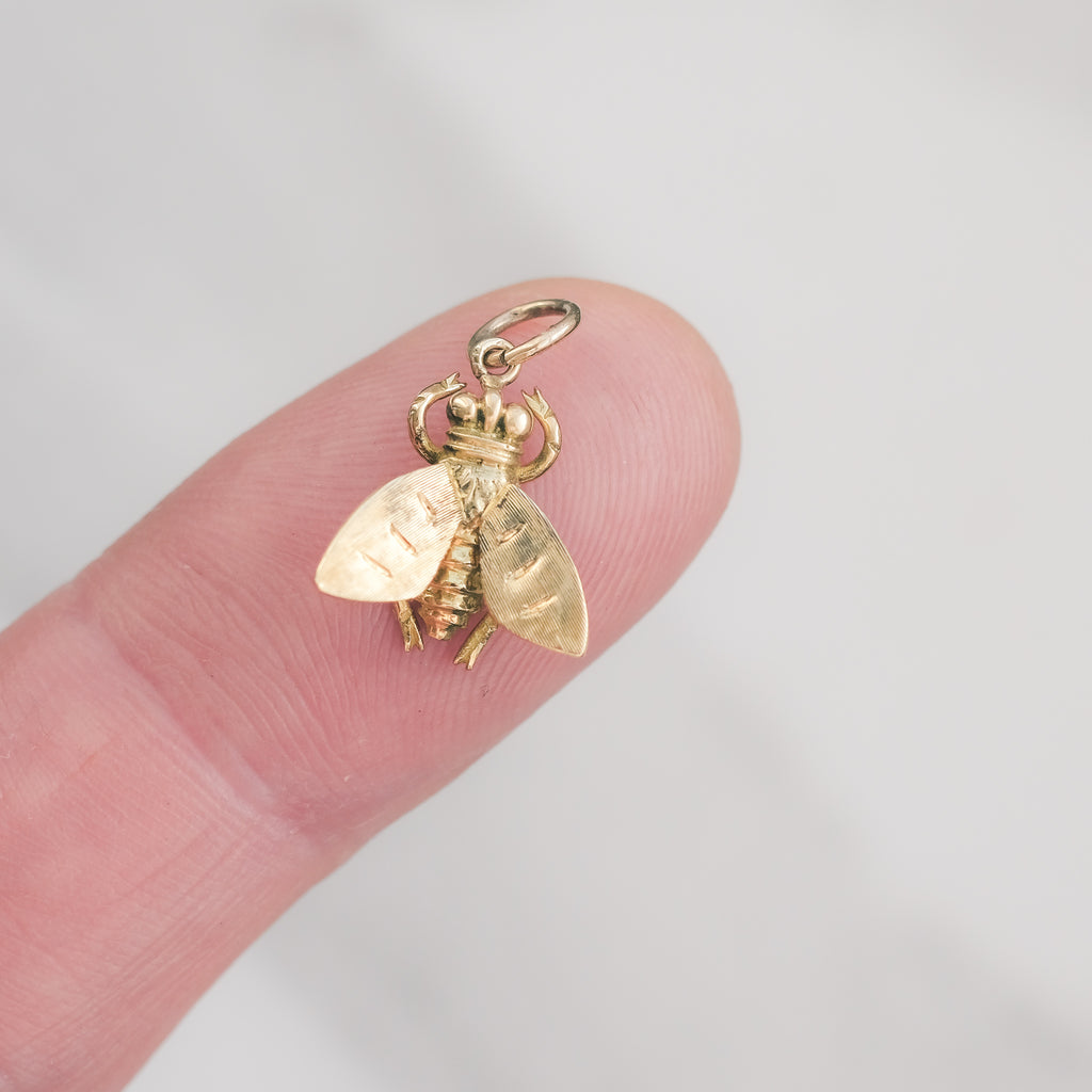 RESERVED Cool gold fly charm made in Italy during the 1950s. Built in 18 carat gold and surprisingly weighty, it's beautifully crafted with a fine textured finish to the wings and remarkable detailing to the head and abdomen. The Italian assay stamp indicates it was made by Caldana Girolamo di Cesare of